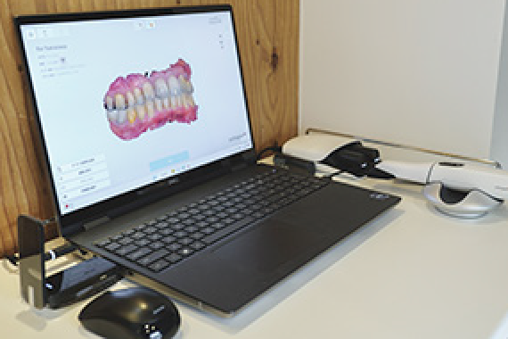 口腔内を高解像度でスキャンし、コンピューターで立体的に解析ができる「デジタル印象採取装置」。歯型を採取するときの不快感と時間を軽減するほか、効率的に治療ができます。