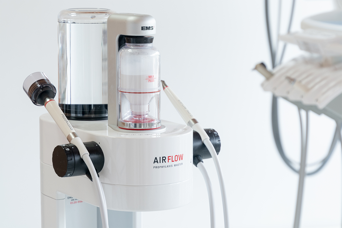 水と空気と微粒子のパウダーを高圧で噴射することによって、歯の表面に付着した汚れや歯石を除去するための最新のクリーニング機器です。