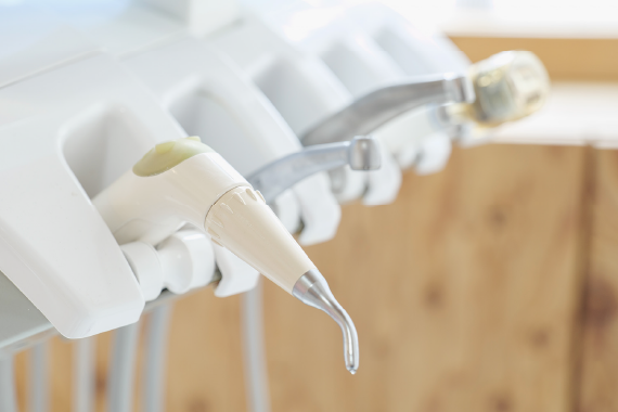 歯を削る時や銀歯を調整する際に生じる粉塵を吸収するバキューム器具です。治療中に細菌が飛散するのを防ぎます。