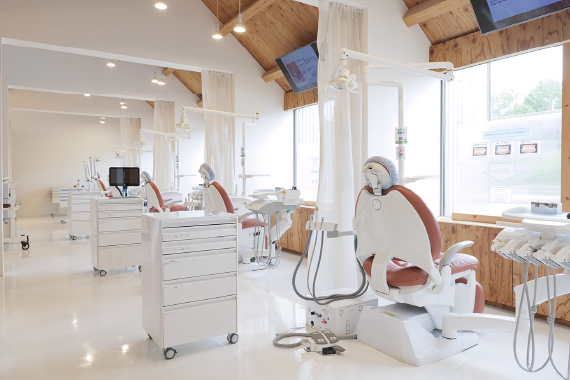歯の悩みや治療の希望を気軽に相談できるスタッフが患者さまをお迎えします。また診療室は日頃から衛生管理を徹底し、常に清潔に保っています。治療に使う医療機器は高圧蒸気滅菌機などで滅菌処理を施し、衛生的な治療を行っています。