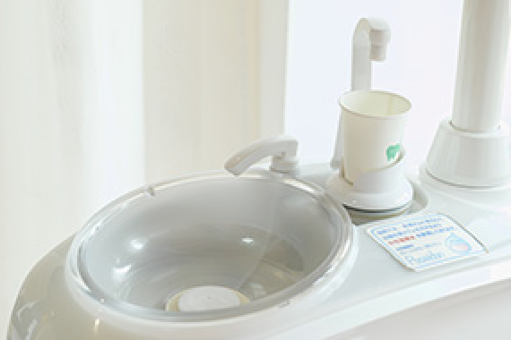 患者さまにお使いいただくコップやトレー、エプロンなどは全て使い捨てを使用。常に衛生的な状態で治療を行います。