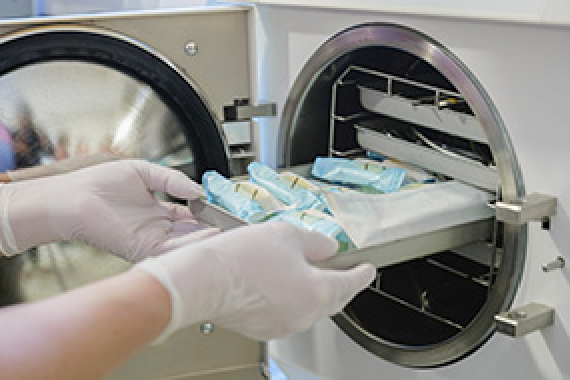 診療機器の中でも使い捨てができないものは、「高圧蒸気滅菌機(オートクレープ)」にて滅菌処理・感染症予防をしています。国内の基準よりも厳しいヨーロッパ基準を採用しております。